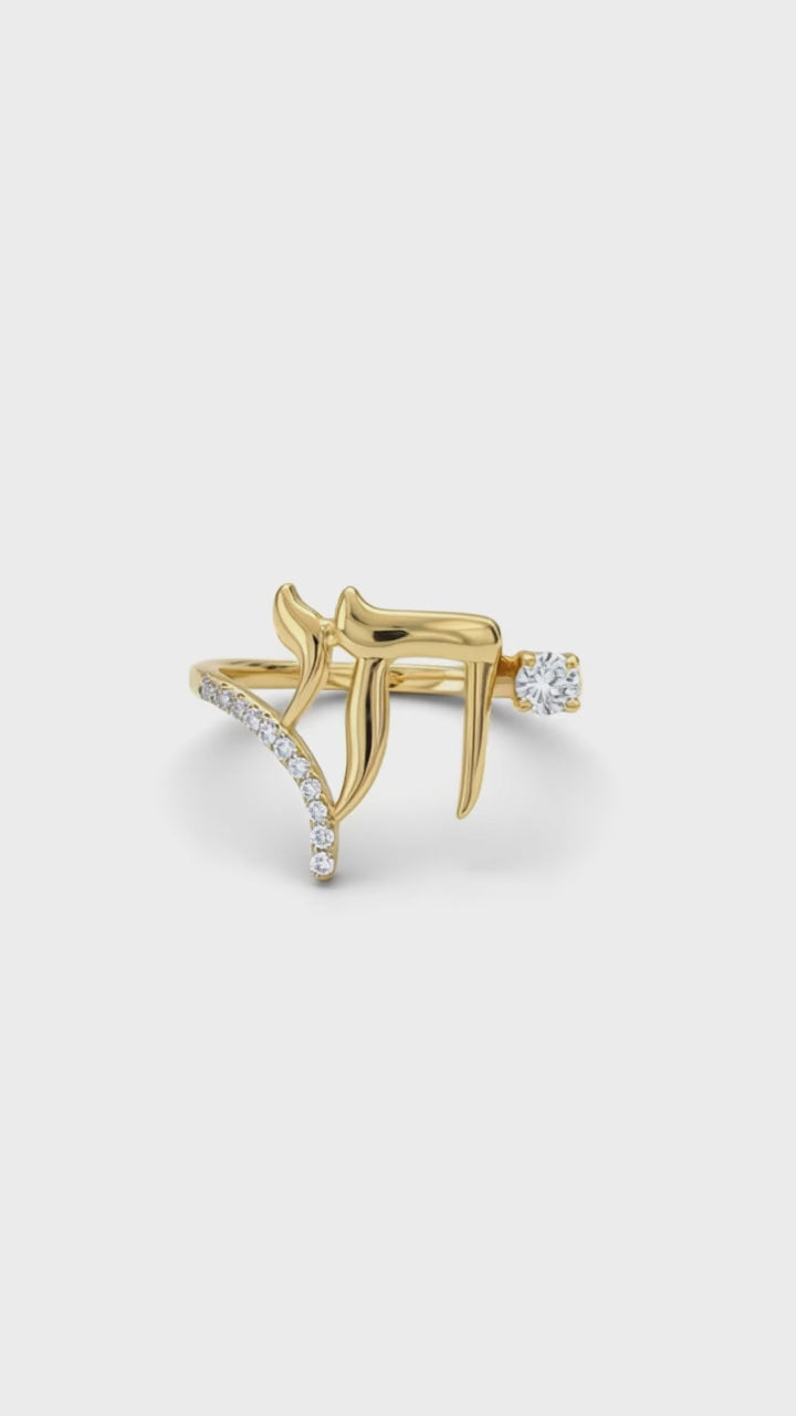 A modern tribute to the Hebrew symbol for Life (חי). This elegant Chai ring features a brilliant accent diamond, blending deep meaning with a high-end minimalist aesthetic.