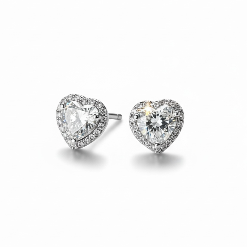 These Heart Shaped Diamond Halo Stud Earrings features VVS1 / COLOR D grade moissanite stones, set all around the band to create continuous brilliance from every angle. Crafted in 925 sterling silver, it delivers a refined, diamond-like sparkle with a modern, elevated feel.